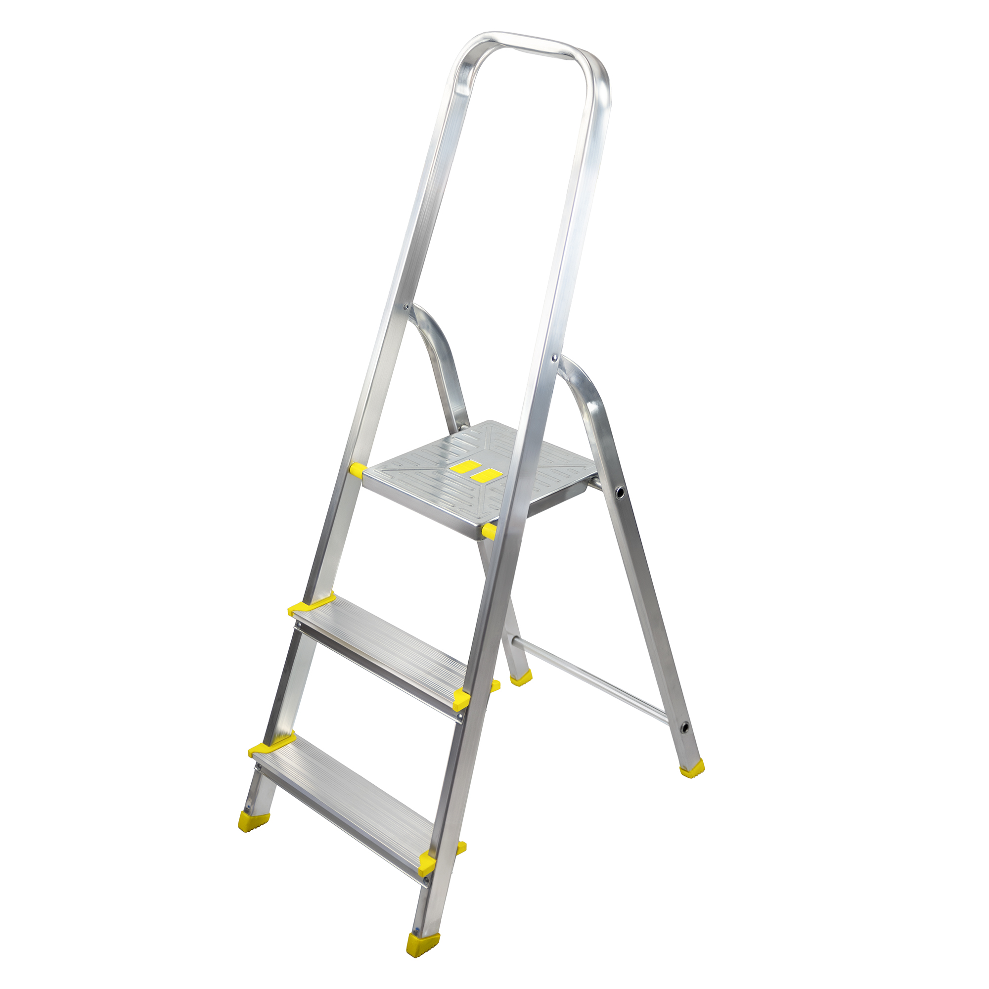 Drabina aluminiowa 3-stopniowa o obciążeniu 150 kg na drabinę to solidne narzędzie wykonane z wytrzymałego aluminium, zapewniające bezpieczne użytkowanie podczas różnorodnych prac domowych czy remontowych. Dzięki powłoce antypoślizgowej na szczeblach i stópkach zapewnia pewność kroków nawet w trudnych warunkach.