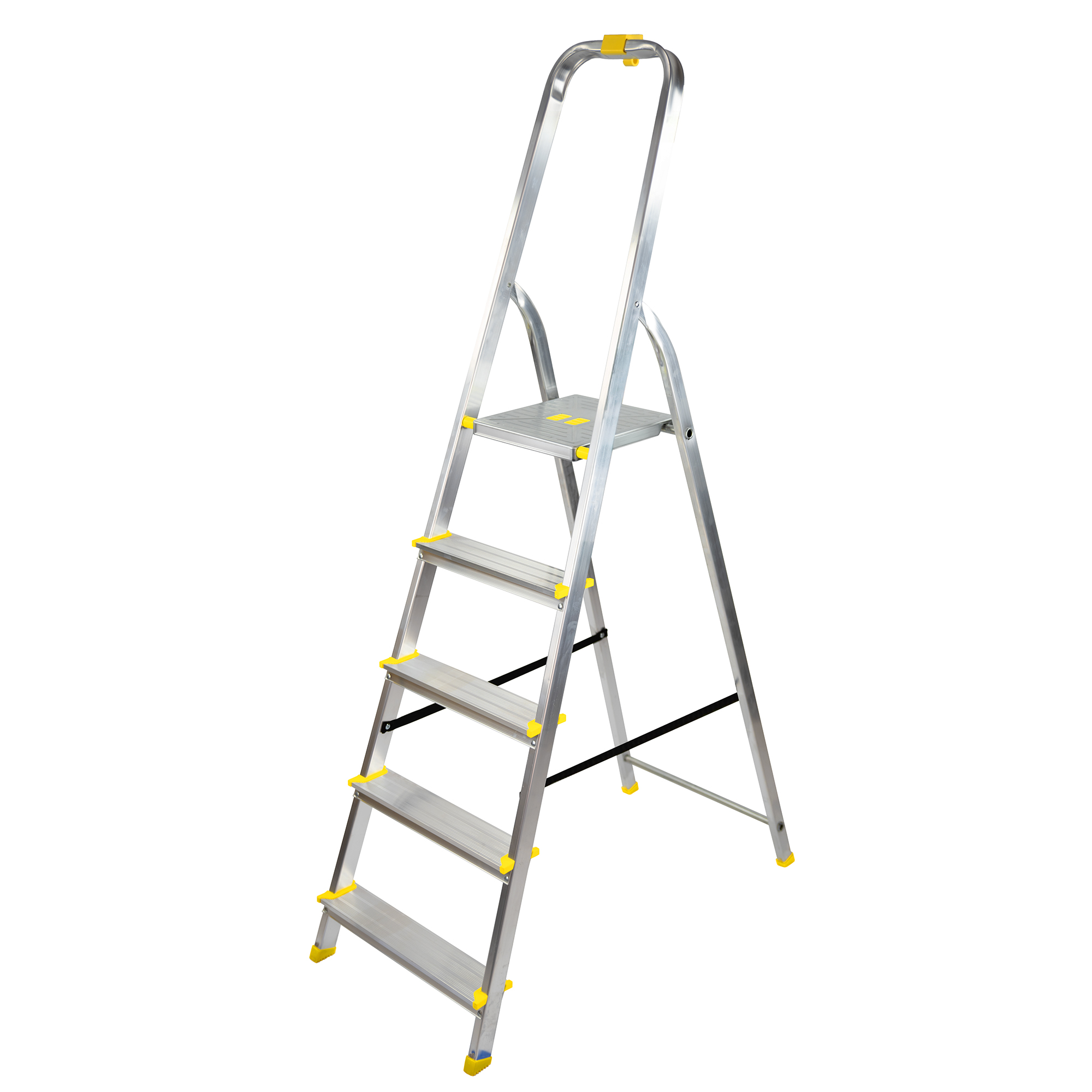 Drabina aluminiowa 5-stopniowa o obciążeniu 150 kg na drabinę to solidne narzędzie wykonane z wytrzymałego aluminium, zapewniające bezpieczne użytkowanie podczas różnorodnych prac domowych czy remontowych. Dzięki powłoce antypoślizgowej na szczeblach i stópkach zapewnia pewność kroków nawet w trudnych warunkach.