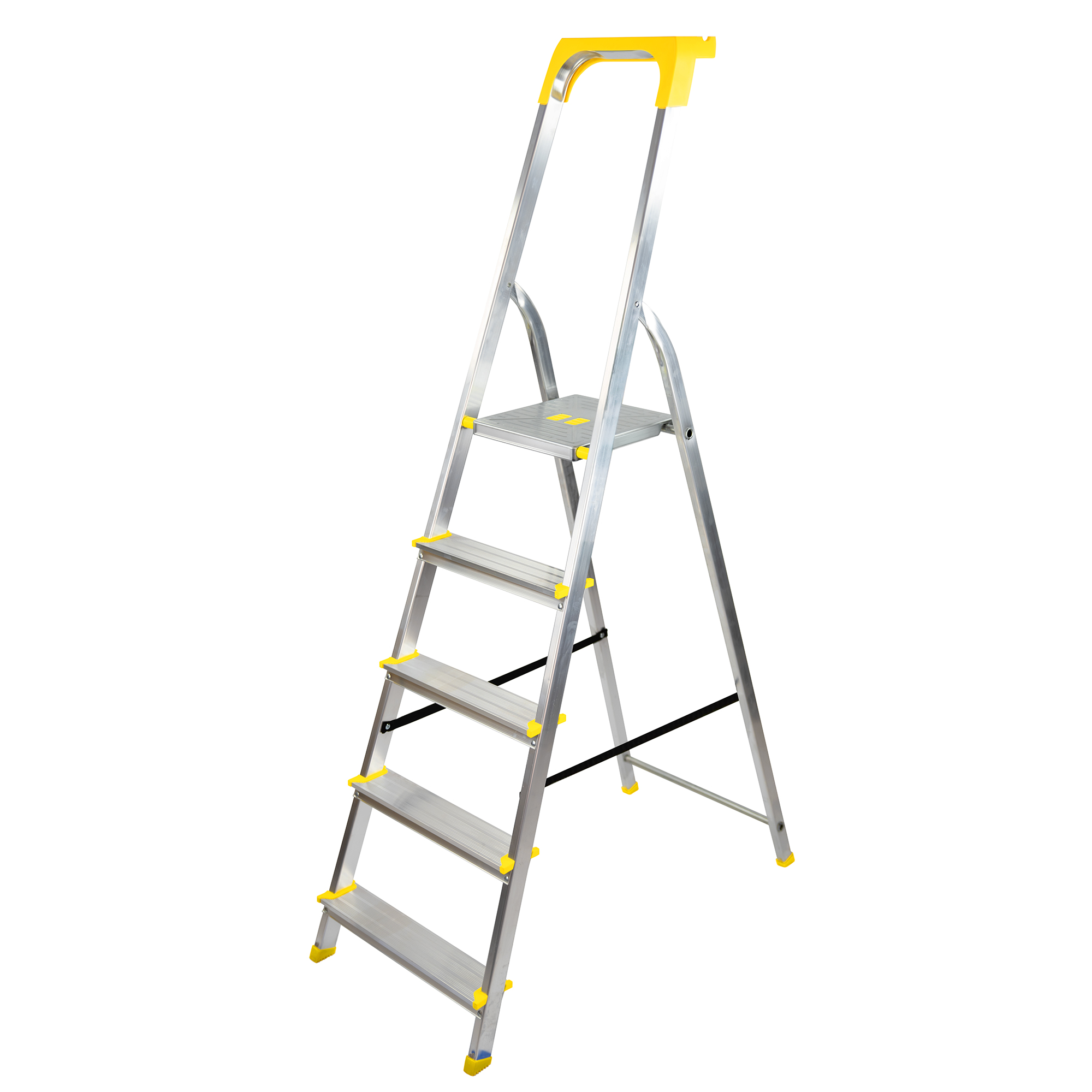 Drabina aluminiowa 5-stopniowa o obciążeniu 150 kg na drabinę to solidne narzędzie wykonane z wytrzymałego aluminium, zapewniające bezpieczne użytkowanie podczas różnorodnych prac domowych czy remontowych. Dzięki powłoce antypoślizgowej na szczeblach i stópkach zapewnia pewność kroków nawet w trudnych warunkach.