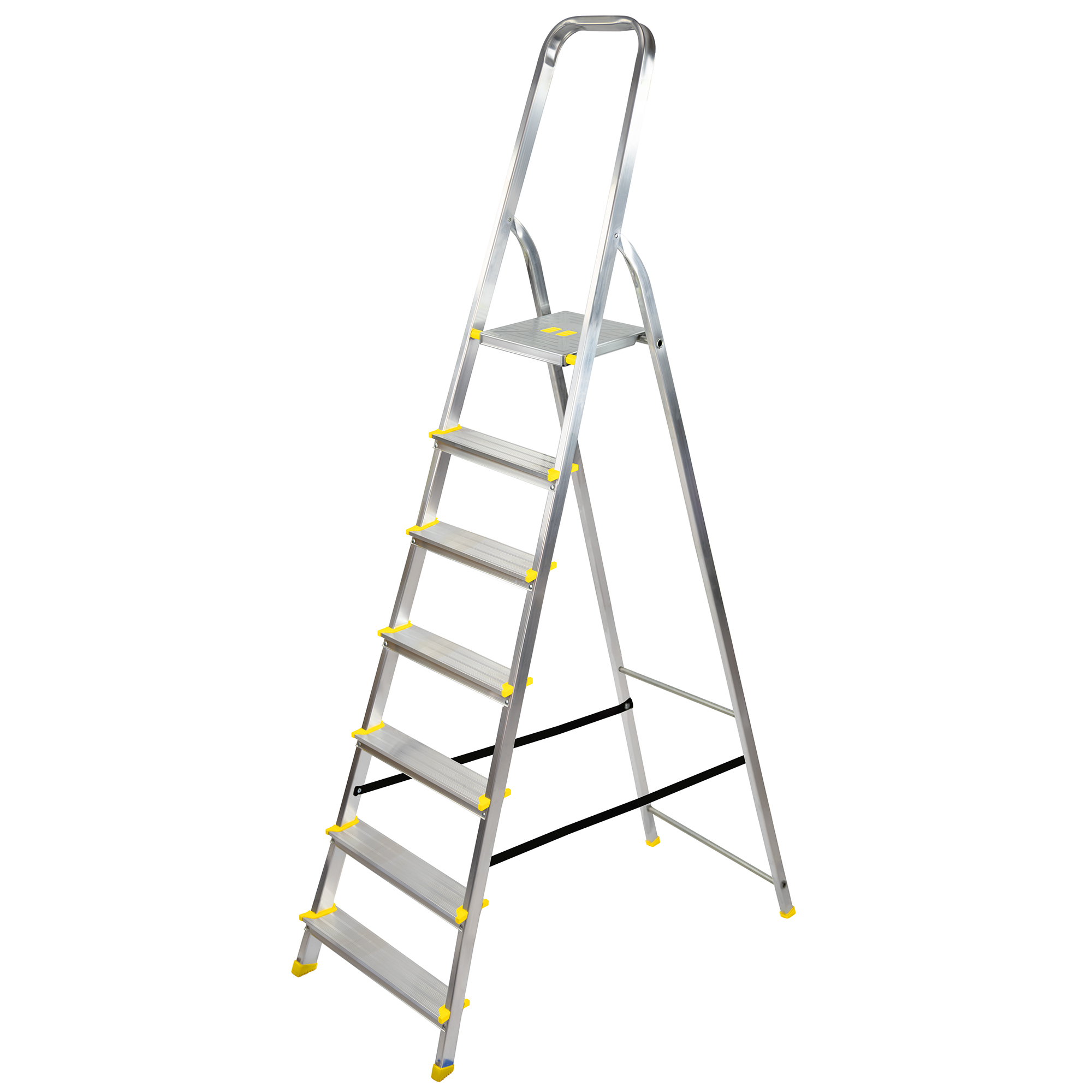 Drabina aluminiowa 7-stopniowa o obciążeniu 150 kg na drabinę to solidne narzędzie wykonane z wytrzymałego aluminium, zapewniające bezpieczne użytkowanie podczas różnorodnych prac domowych czy remontowych. Dzięki powłoce antypoślizgowej na szczeblach i stópkach zapewnia pewność kroków nawet w trudnych warunkach.