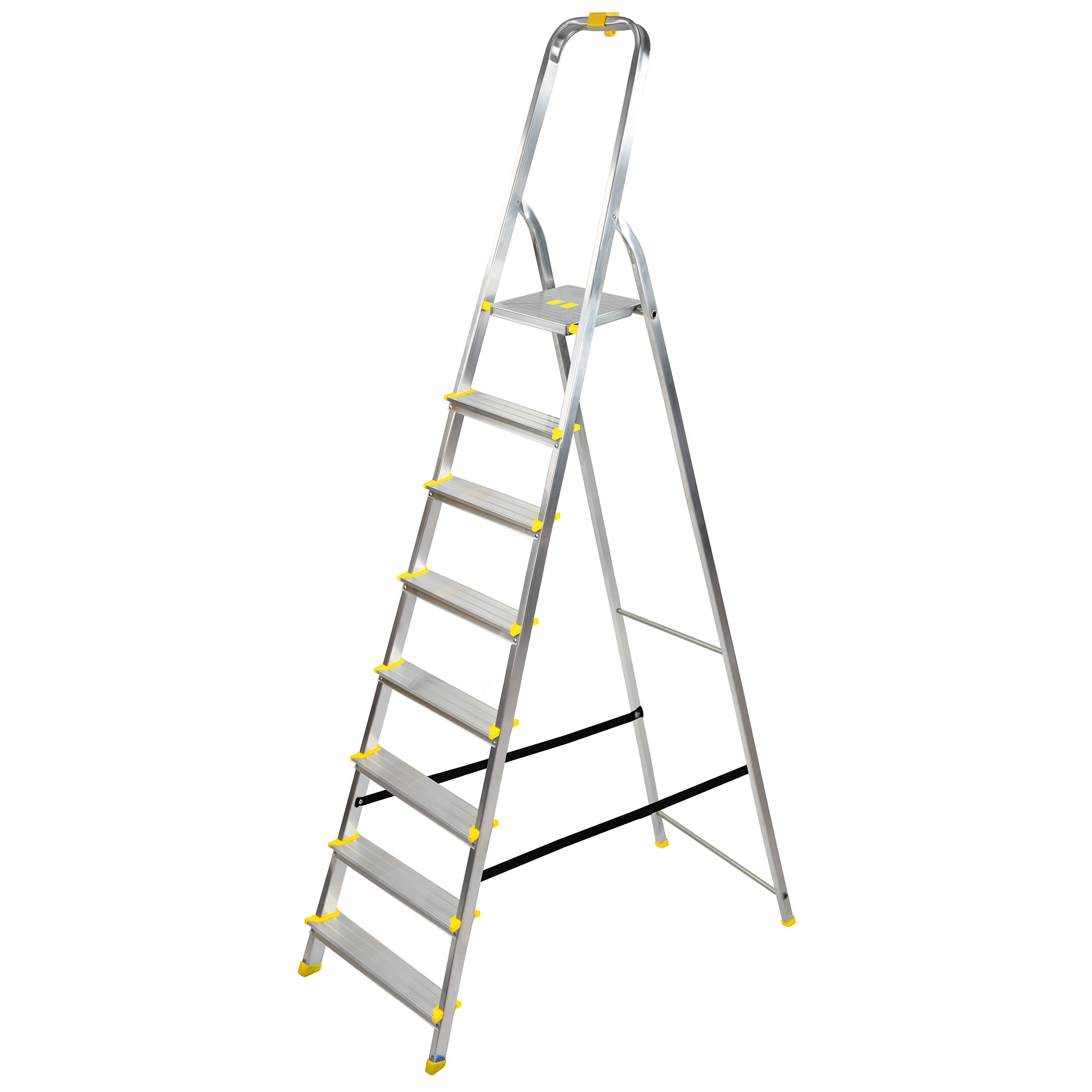Drabina aluminiowa 8-stopniowa o obciążeniu 150 kg na drabinę to solidne narzędzie wykonane z wytrzymałego aluminium, zapewniające bezpieczne użytkowanie podczas różnorodnych prac domowych czy remontowych. Dzięki powłoce antypoślizgowej na szczeblach i stópkach zapewnia pewność kroków nawet w trudnych warunkach.