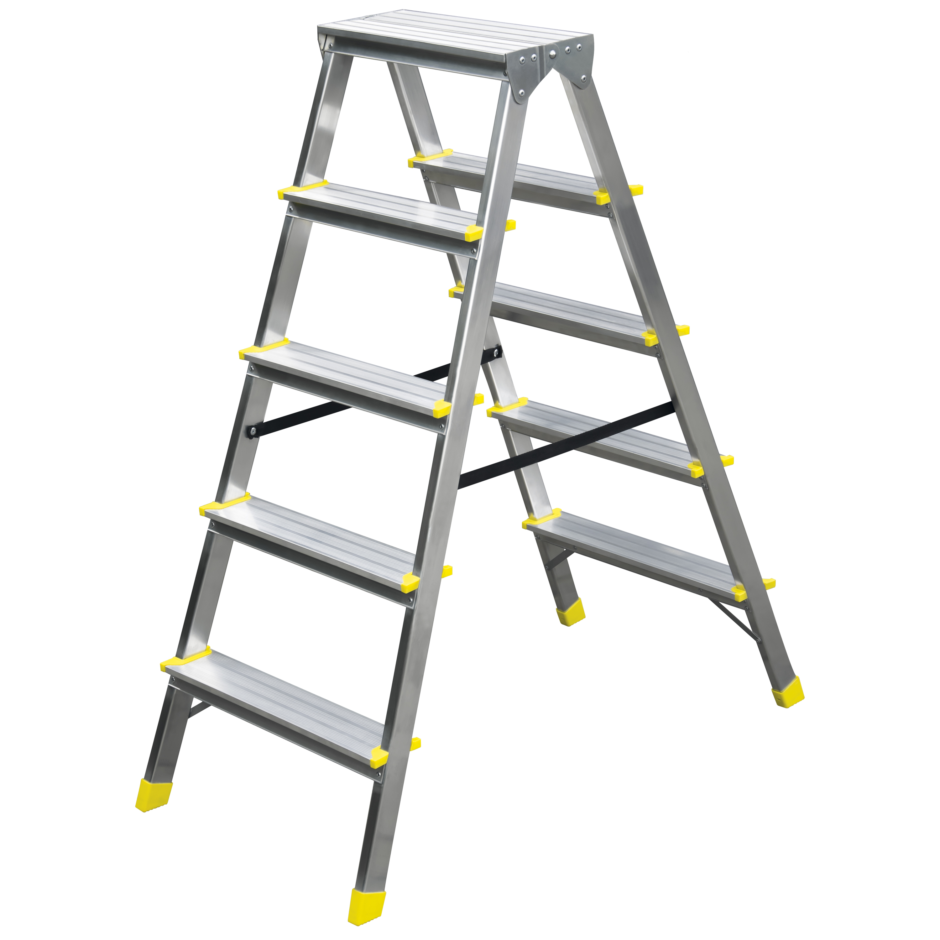Drabina BS-DDA5 to drabina profesjonalna aluminiowa dwustronna spełniająca wymagania normy europejskiej EN 131 i posiadająca certyfikat TÜV.
